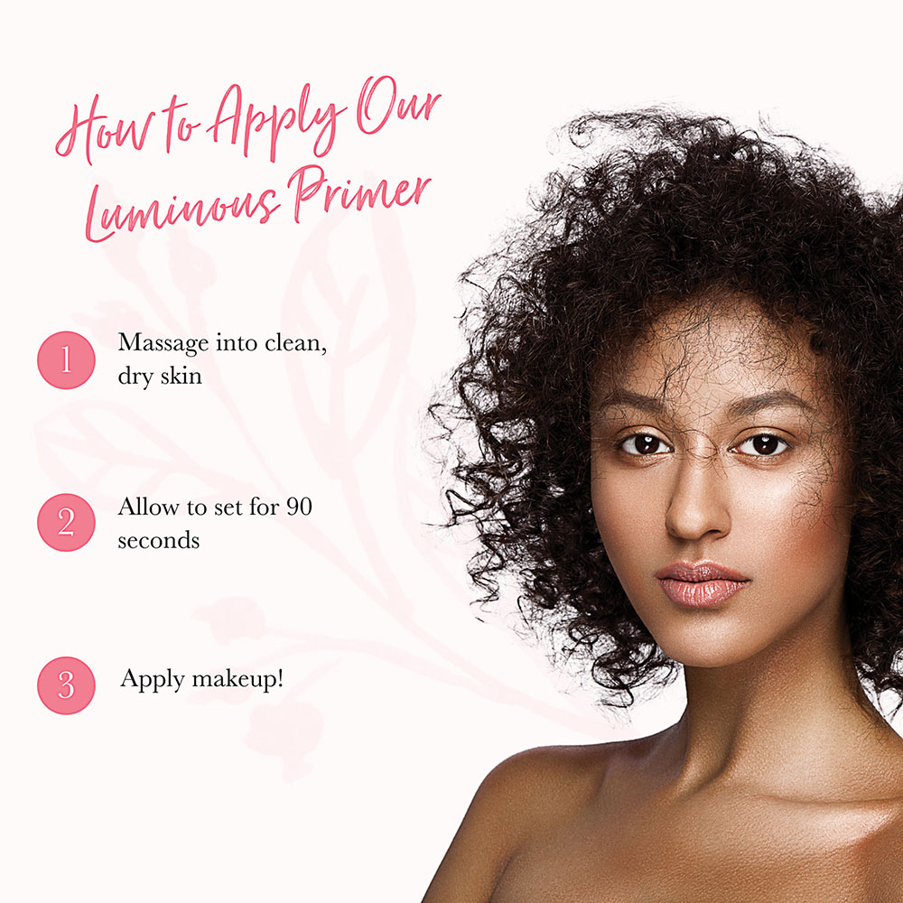 Silicone-free, antioxidant infused primer diffuses pores and illuminates with light reflective pigment while giving flawless, long lasting cosmetic application.
